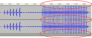 y 2) la amplitud de los patrones de sonido de la grabación ni toque el borde de
