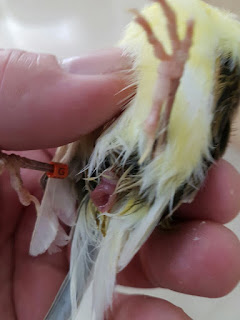 aviario esta mañana observo a la hembra cabizbaja, arrinconada y con el pico abierto